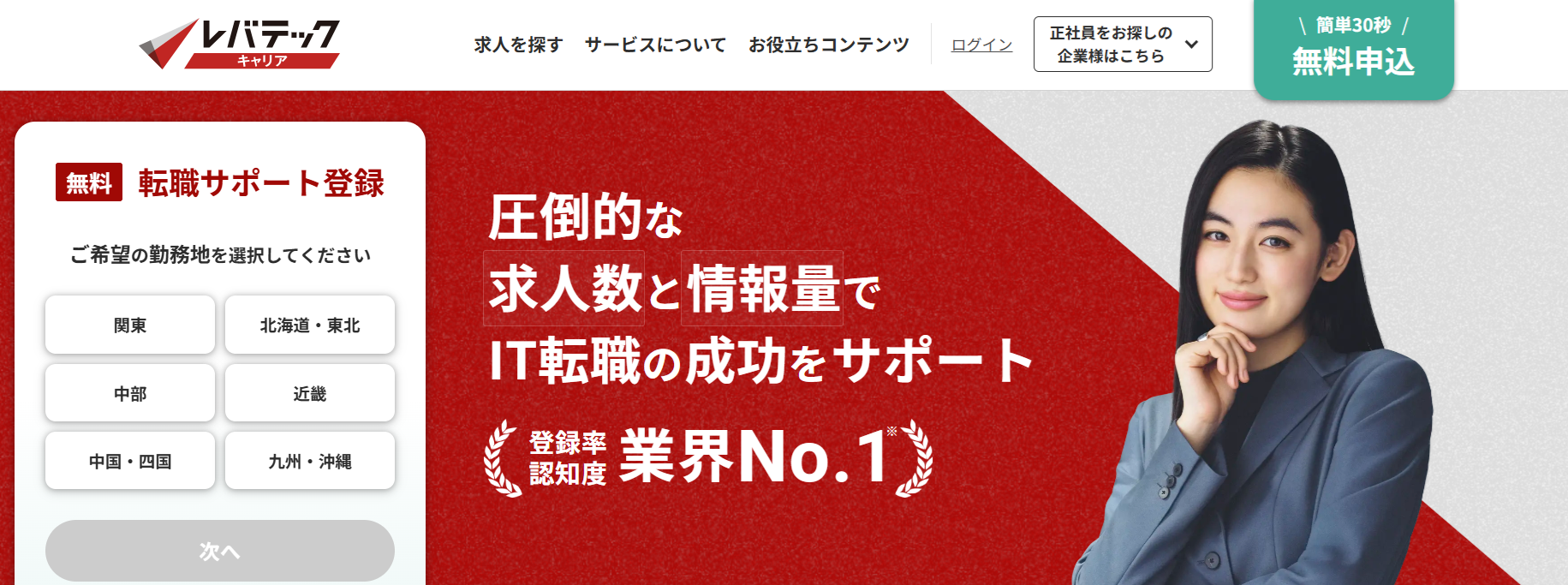 1:リクルートエージェント|30代に強い実績を持つ転職エージェント